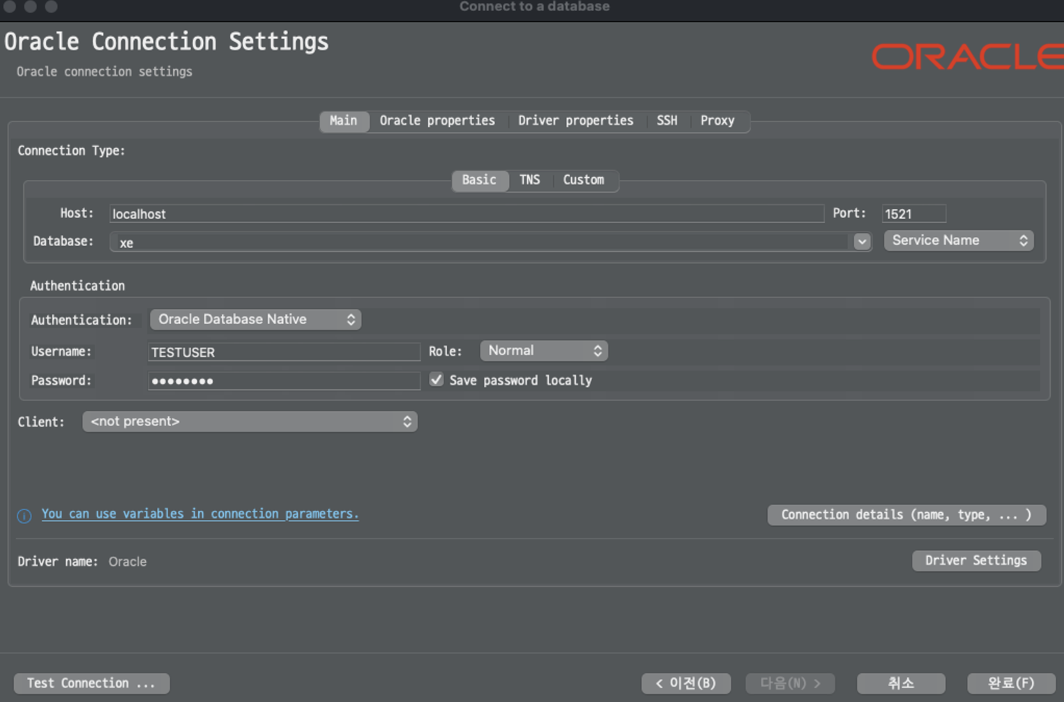생성한 테이블 스페이스, 유저로 데이터베이스 연결하기